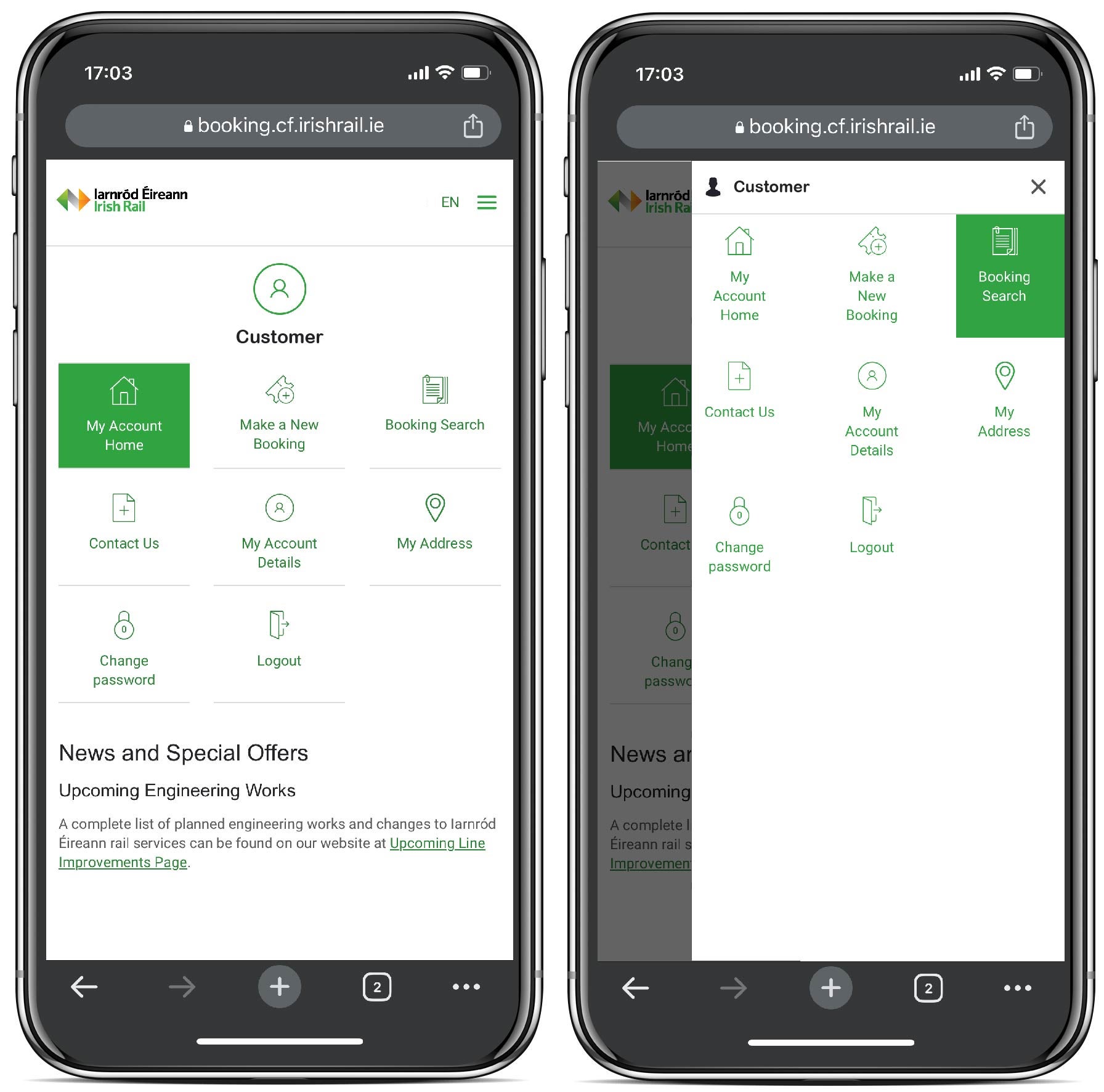 Using an Iarnród Éireann Account