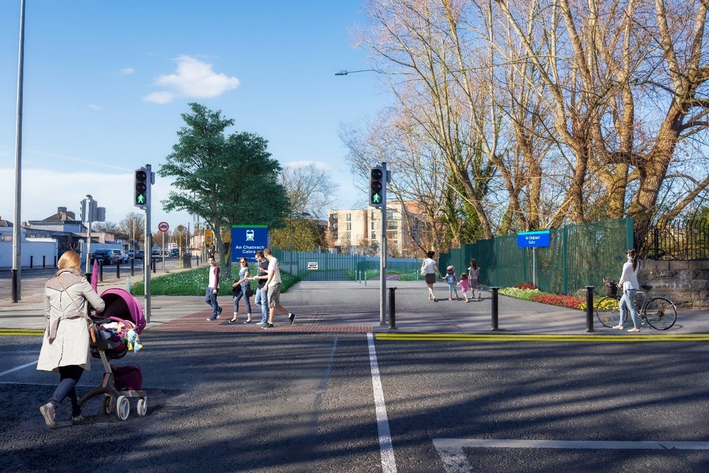 Cabra is located on the Phoenix Park Tunnel line, which sees train services operating from Newbridge / Hazelhatch in Co Kildare through Cabra and onwards to Connolly / Grand Canal Dock. The new station will provide rail access for up to 26,000 people living within one km of the station with direct and frequent services to Dublin city centre. There will be opportunities to interchange at the existing Connolly station and at the new Heuston West station for long distance services.