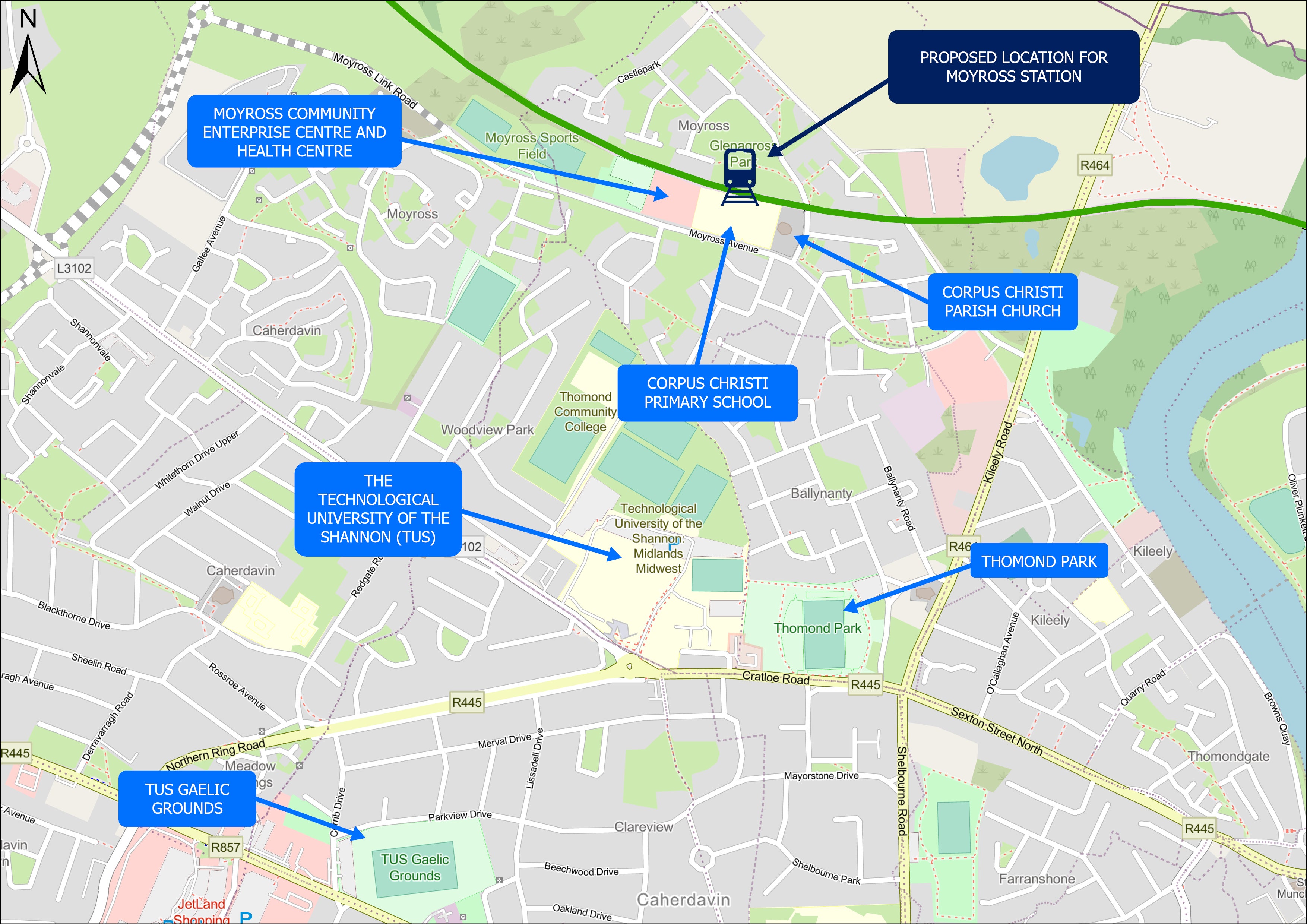 The new Moyross station will serve as a catalyst for regeneration of this area and will support the National Strategic objective of 'Compact Growth' as outlined in the National Development Plan 2021 - 2030.