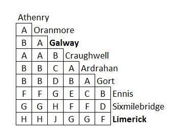 - Note the letter where your origin and destination stations intersect on the grid eg fare letter Craughwell to/from Sixmilebridge = F. Using that letter check the Tickets and Fares Chart (below) to view the tickets and fares available for that station combination
