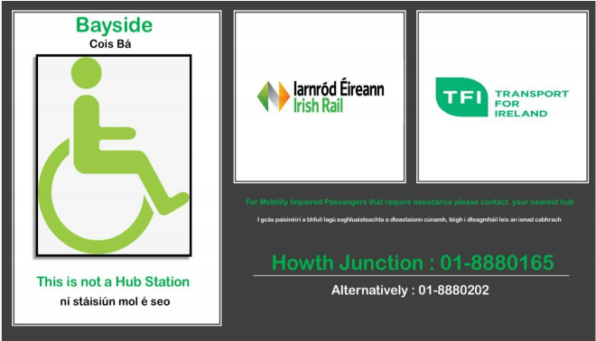 Iarnród Éireann has a new improved zonal accessibility policy to provide a better service and quicker response times for DART, Maynooth, Cork and Northern Commuter and Dublin Connolly to Balbriggan accessibility users. This policy divides the 31 stations on the DART, Maynooth and Northern Commuter line into 13 zones, with each zone including between one to four stations. For the Cork Commuter line, 10 stations are divided into one zone. One station in each zone will always manned (a Hub station) and will provide support to other stations in that zone (Non Hub stations).