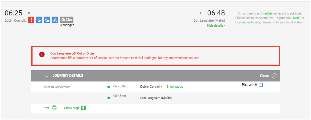 Iarnród Éireann Irish Rail will update Station Information pages, Journey Planner and our Realtime Applications weekly with information that may affect a customers journey. This information is highlighted to the customer using a "Travel Alert" through the various channels listed below;