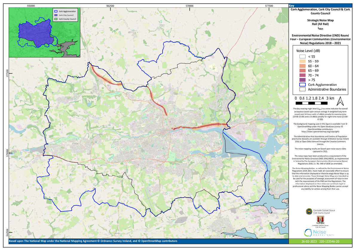 Cuirtear Léarscáileanna Torann Straitéiseacha Iarnród Éireann ar fáil don phobal de réir riachtanais reachtaíochta na Rialachán um Torann Comhshaoil 2018.