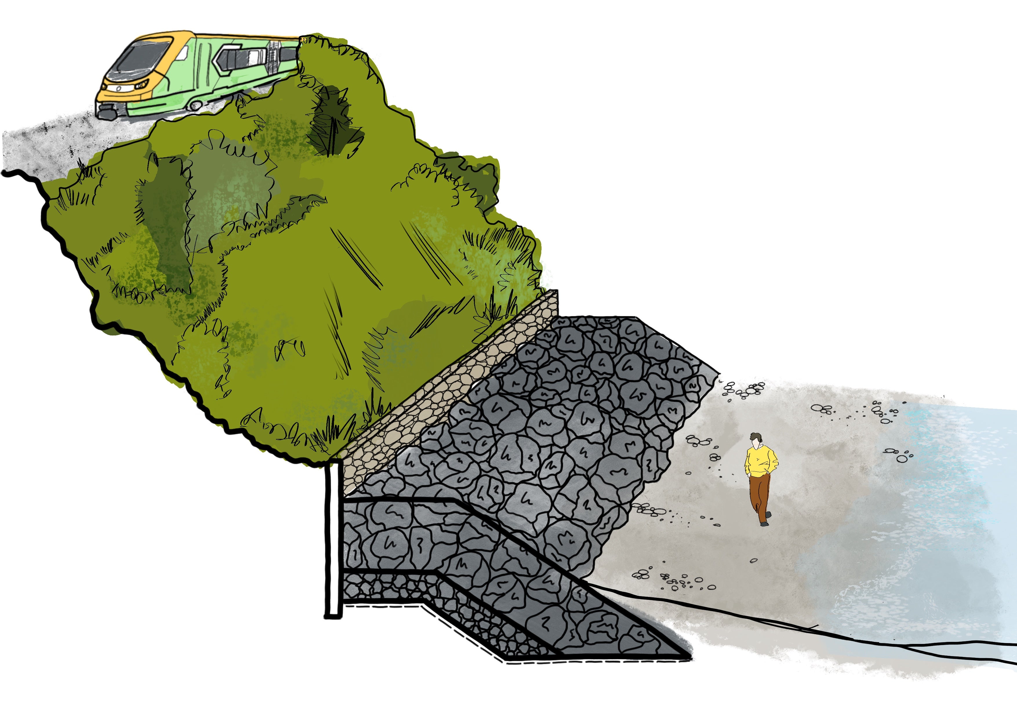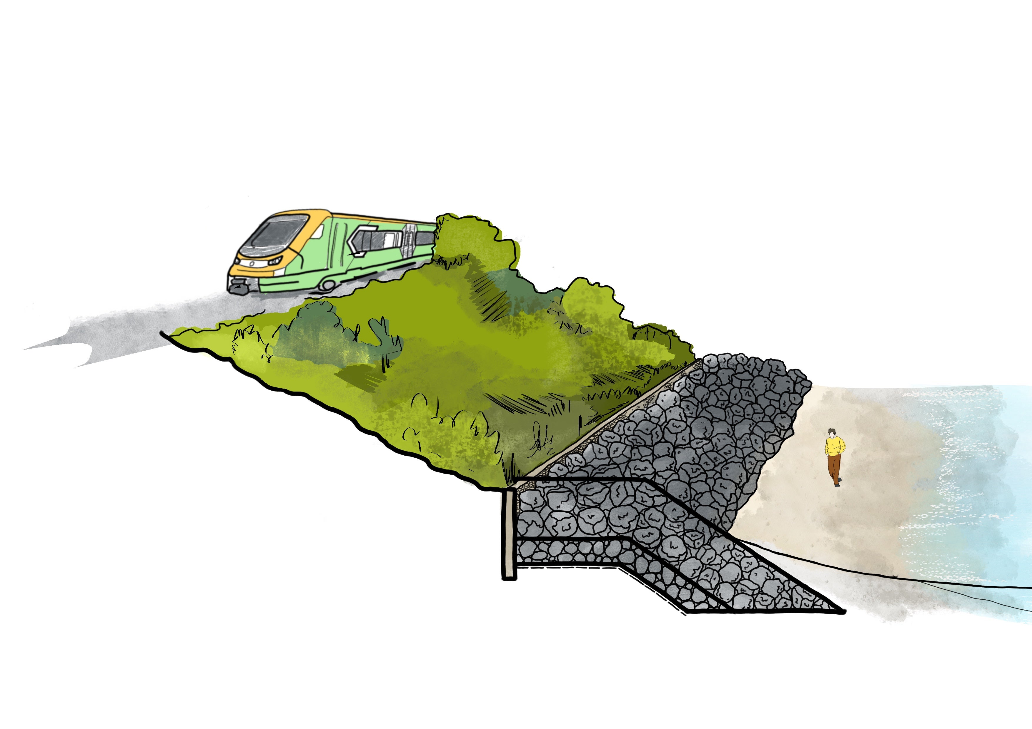 - Chun an baol a bhaineann le creimeadh cósta a laghdú agus na claífoirt a thacaíonn leis an iarnród a lagú.