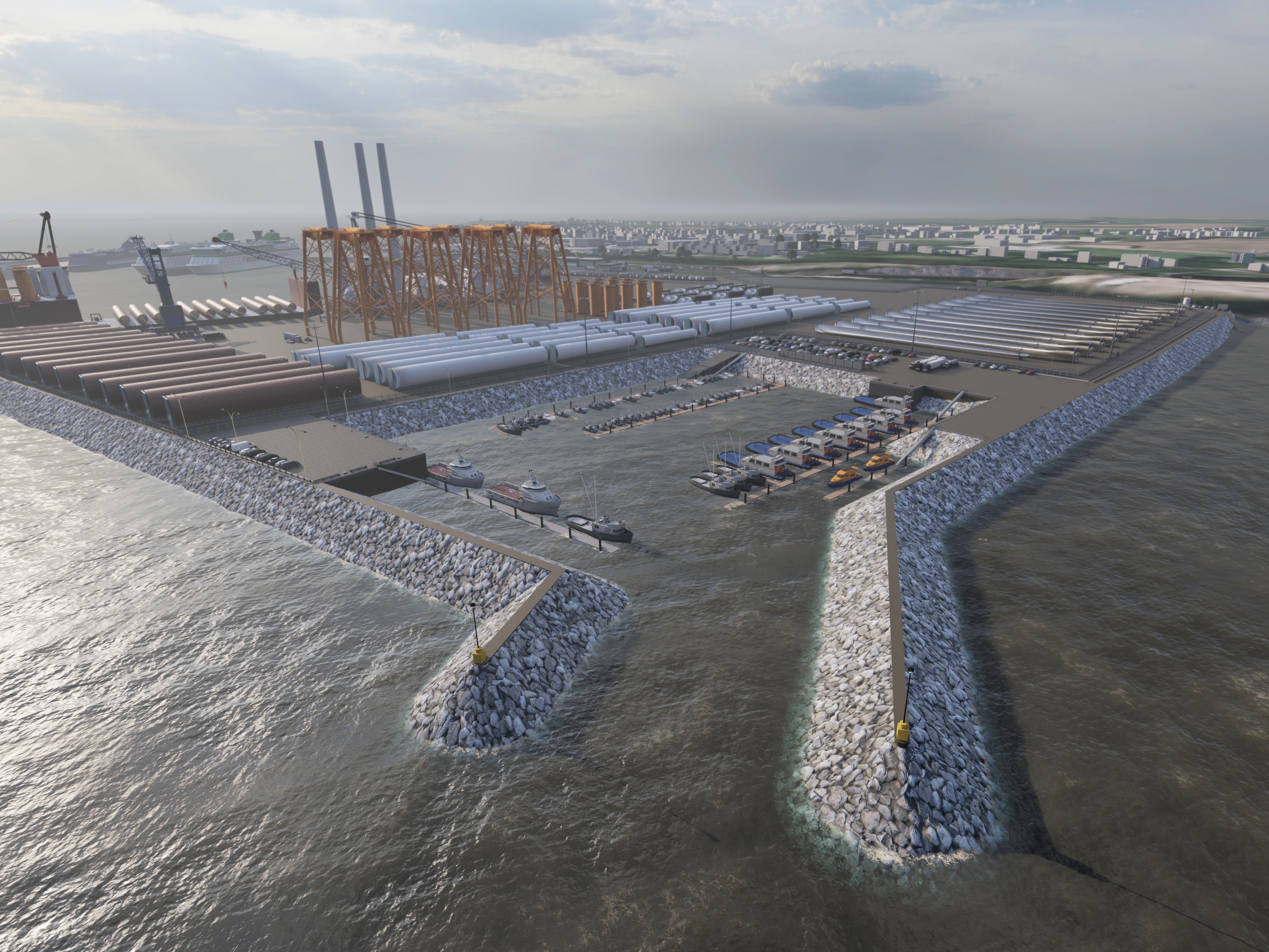 Tá an mhórfhorbairt straitéiseach seo molta chun tacú le tógáil, oibriú agus cothabháil feirmeacha gaoithe amach ón gcósta atá beartaithe do Mhuir Éireann agus don Mhuir Cheilteach.
